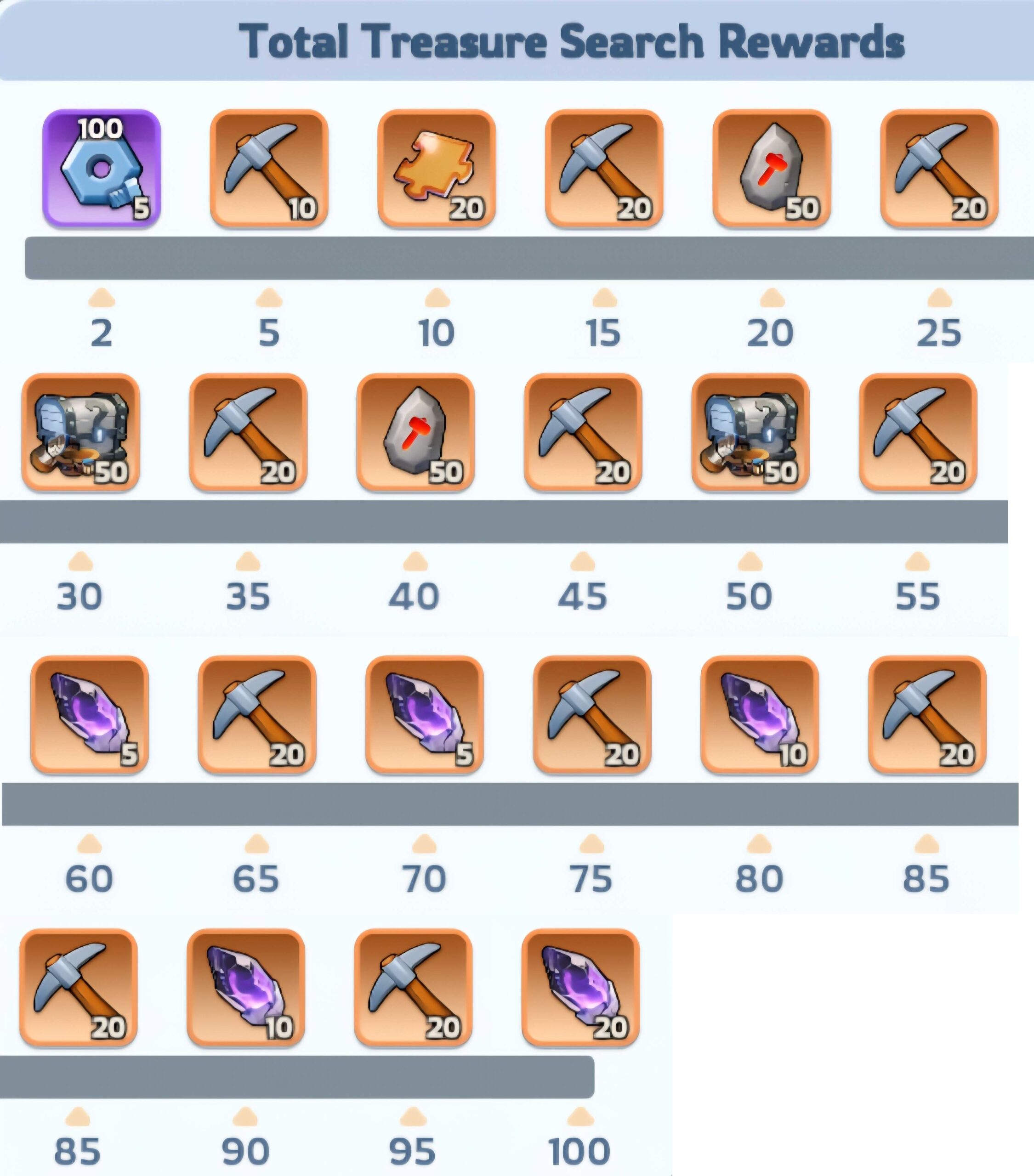 يتم ضمان الحصول على الكنز النهائي بعد 14 محاولة بحث في الطوابق العادية، وبعد 22 محاولة في الطوابق العليا (تختلف المكافآت حسب عمر المقاطعة)