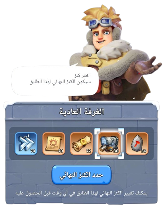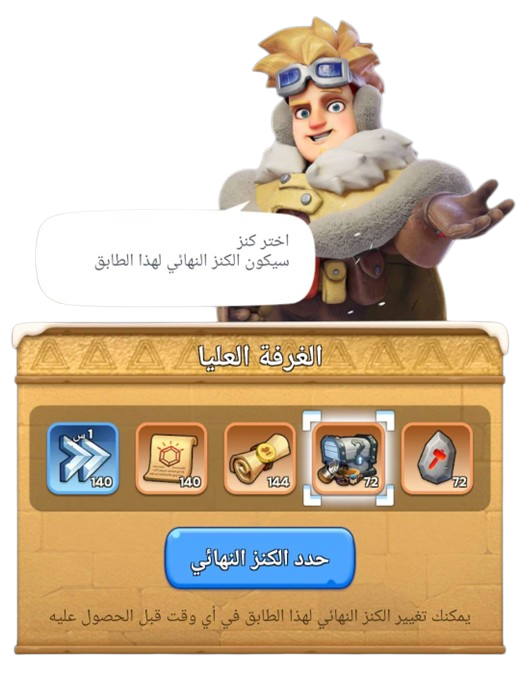 قبل البدء في استكشاف كل طابق، يمكنك تحديد مكافأة ككنز نهائي لهذا الطابق. يمكنك التقدم إلى الطابق التالي بعد العثور على الكنز النهائي.
