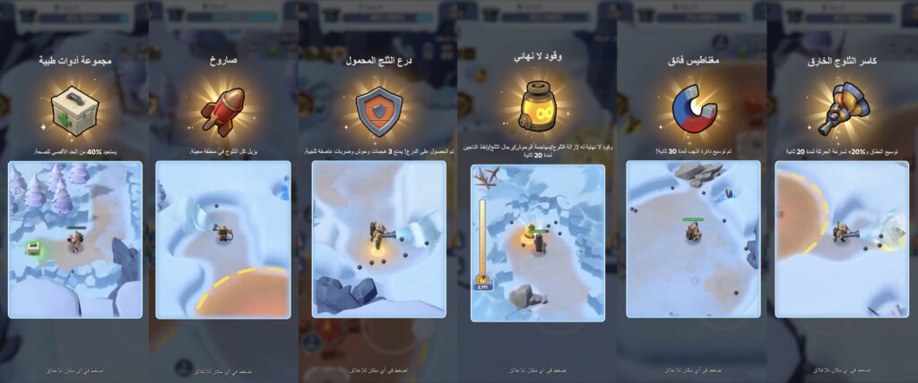 - صاروخ: يزيل كل الثلوج في منطقة معينة.