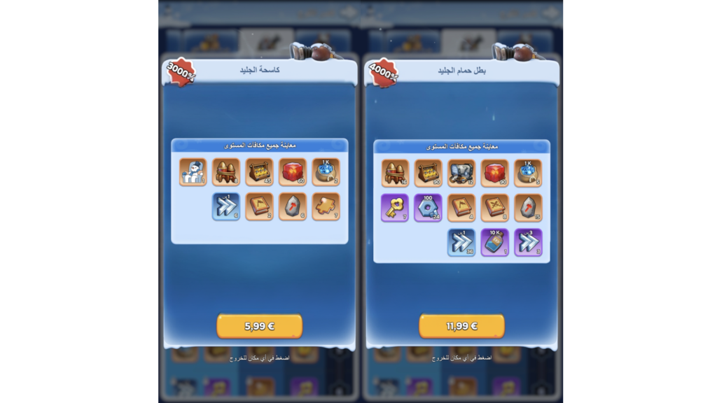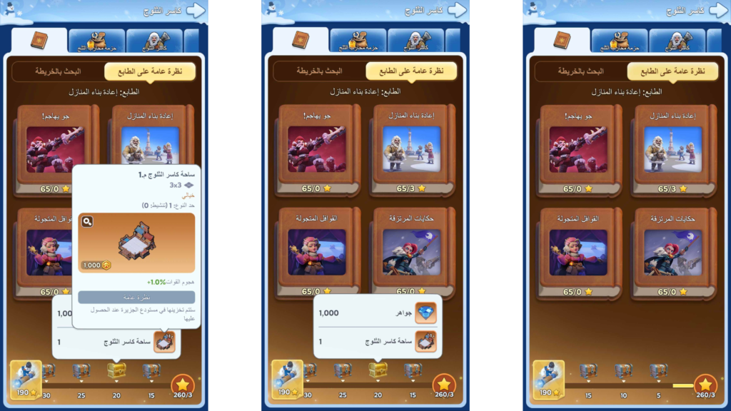 - من خلال هزيمة الوحوش، يمكنك جمع صور ذات طابع خاص. كل صورة تأتي مع جواهر ونجوم — النجوم هي الشيء المهم لأن جمعها مهم لفتح أشكال مجانية ذات طابع لكاسر الثلوج للمدينة والمسيرة والإطار و لوحة الاسم.