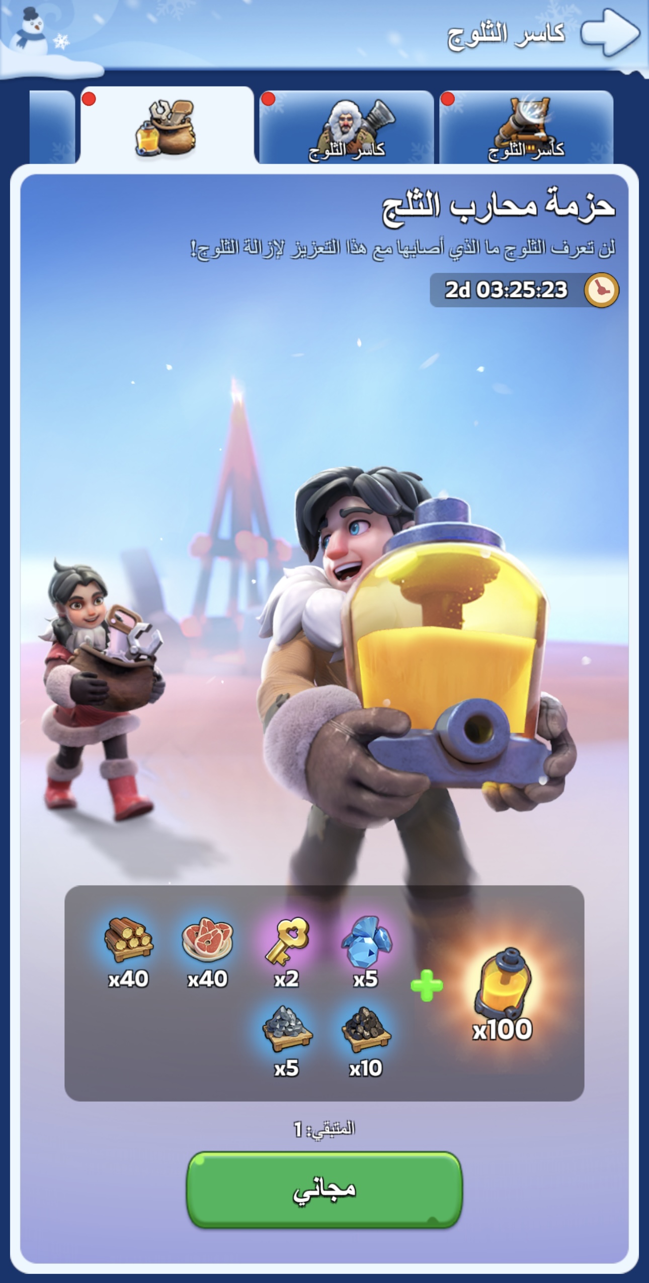 كاسر الثلوج هي فعالية شهرية تتيح للاعبين لعب لعبة مصغرة مشابهة لإحدى الإعلانات الشهيرة التي جذبت اللاعبين للعب النجاة في الصقيع. خلال اللعب، يمكنك الحصول على مكافآت بطريقة ممتعة وسهلة لمواصلة تنمية حسابك وتطويره.