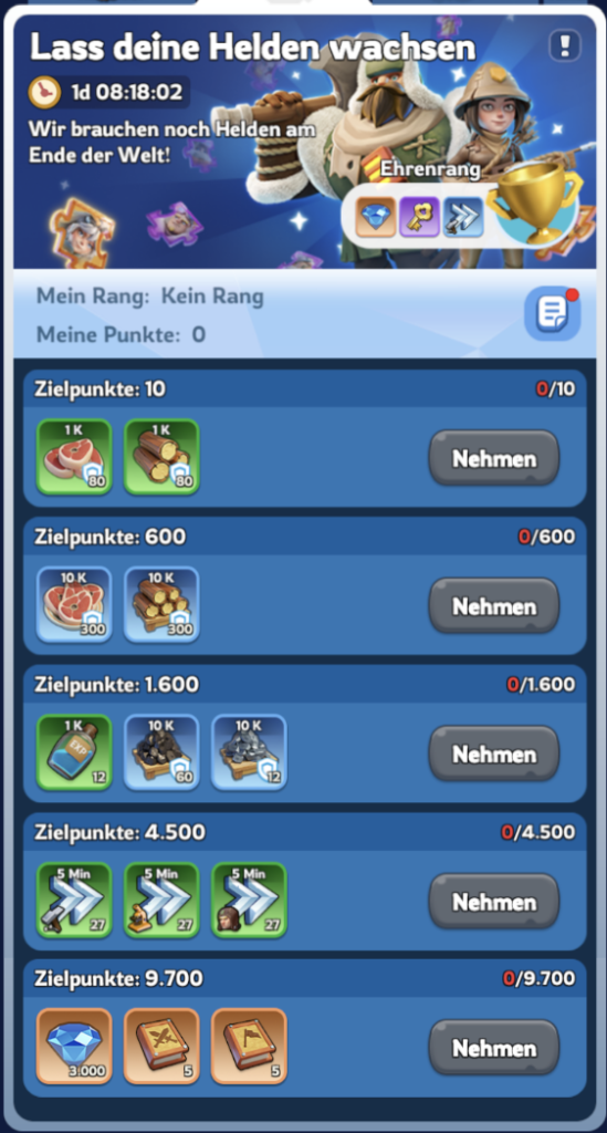 Um Punkte für Meilenstein- und Rankbelohnungen zu erhalten, musst du folgende Aufgaben erfüllen: