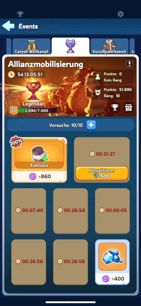 Hinweis: Allianzmobilisierung findet zweimal im Monat statt, bis die Region ein Alter von etwa 13 Wochen erreicht hat. Danach wechselt sich das Event mit dem Alliance Showdown ab.
