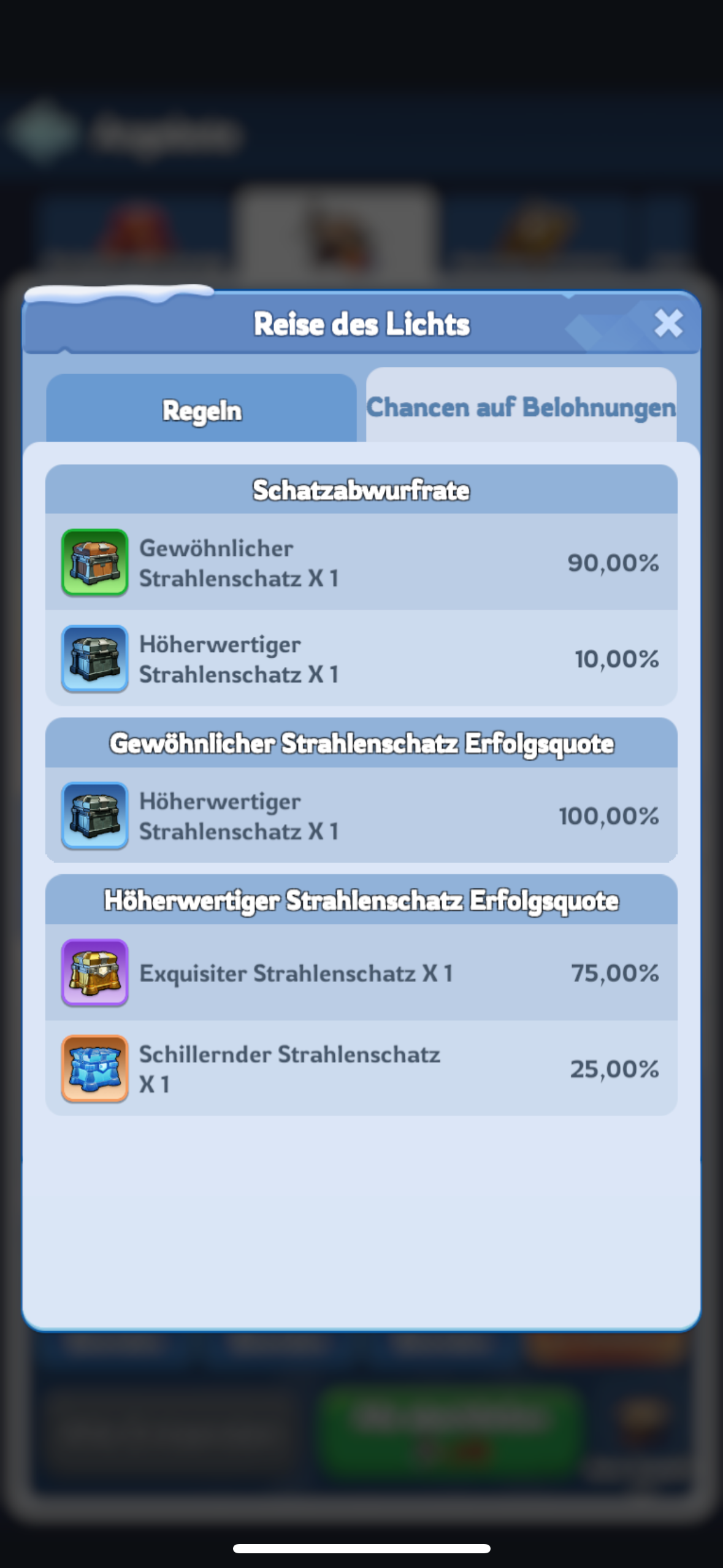 3 Höherwertige Strahlenschätze ergeben entweder einen exquisiten Strahlenschatz (75 % Chance) oder einen schillerndem Strahlenschatz (25 % Chance).