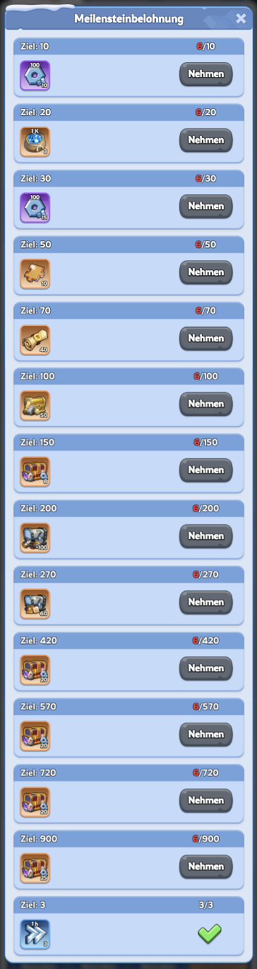 - Hinweis: Es können F2P 39 Truhen erhalten werden. Dafür müssen alle 8 Stunden erneut Expeditionen gestartet werden, sowie drei Expeditionsteams freigeschaltet worden sein. Kurz bevor das Event endet schickst du noch einmal Expeditionen los. Diese können noch nach Ende des Events eingesammelt werden.