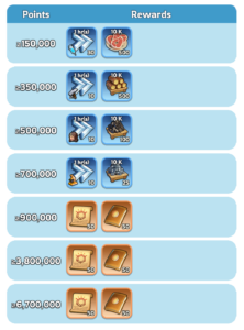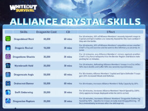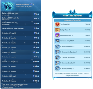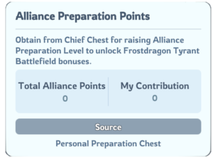 Lv5 : 50.000 Alliance Preparation Points200% Healing Speed Up in Infirmary for alliance members in the Frostdragon Battlefield