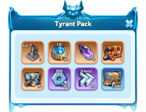 The crowned Frostdragon Tyrant will host a State-wide feast in their home state. During this feast, all Chiefs can give the Tyrant likes, with each like granting 200 gems. Each Chief can give up to 5 likes per day.