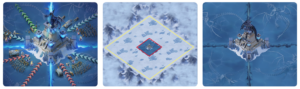 – The Frostdragon Battlefield is divided into the Dragon Crypt (area within the red line) and the Border Region (area within the yellow line). Cities are randomly placed in the Border Region at the opening of the battlefield. Chiefs moving to the Dragon Crypt cannot activate Shields (which are removed on entry). Cities defeated in the Crypt will be randomly teleported back to the Border Region.