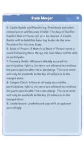 State of Power: If there is a State of Power event a week following State Merge, the new State will be able to participate.