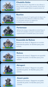 Chaque bâtiment dispose de défenseurs aux caractéristiques et à la puissance variables.