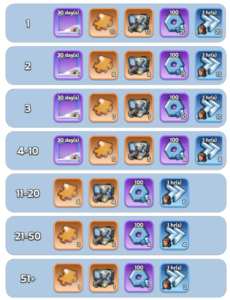 Ces récompenses sont attribuées aux légionnaires des Légions 1 et 2, en fonction du classement en points de chaque Légion sur son champ de bataille respectif.