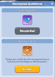 ● Premier achat quotidien : profitez de récompenses bonus avec votre premier achat de la journée, pour chaque palier !