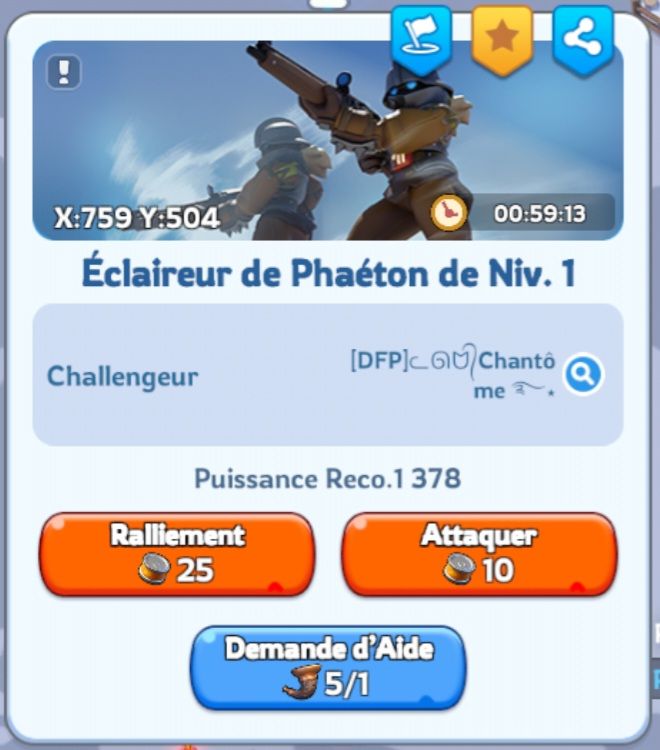 Au fur et à mesure de votre progression dans l’événement, les membres de rang 4 ou 5 de votre alliance auront la possibilité de défier un capitaine Phaéton lorsque suffisamment de membres auront rempli les conditions requises. L’appel d’un capitaine enverra un message à tous les membres de l’alliance pour annoncer la reconnaissance du capitaine et lancera un compte à rebours de 30 minutes pour le vaincre.