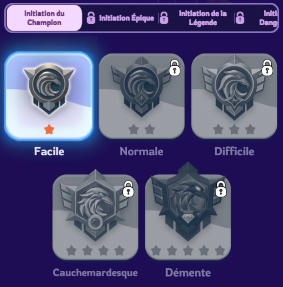 Une fois sélectionné, tous les défis seront du niveau de difficulté choisi et ne pourront plus être modifiés.