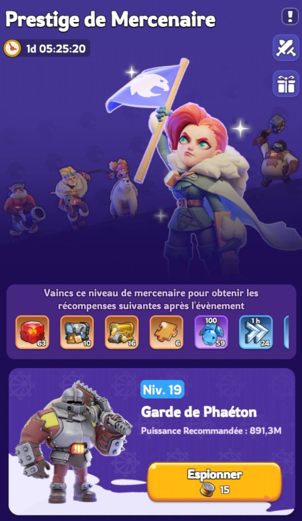 Vous devez repérer un mercenaire Phaéton pour qu’il apparaisse sur la carte. Pour ce faire, rendez-vous dans l’onglet Événement et cliquez sur « Repérer ». Repérer un mercenaire coûte 15 points d’endurance et vous mènera à la vue du monde une fois le mercenaire localisé. Vous disposez ensuite d’une heure pour le vaincre de l’une des manières suivantes :