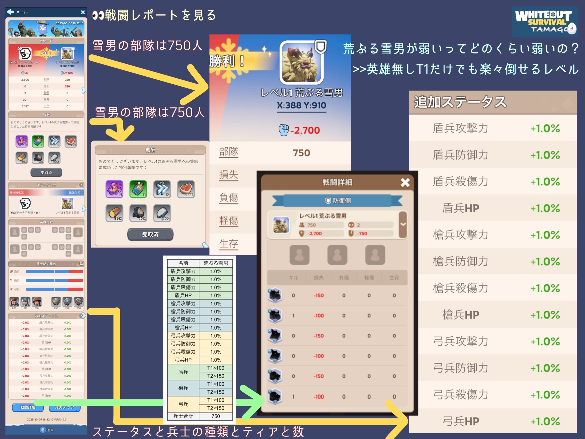 荒ぶる雪男はとても弱いです。戦闘レポートを覗いてみましょう