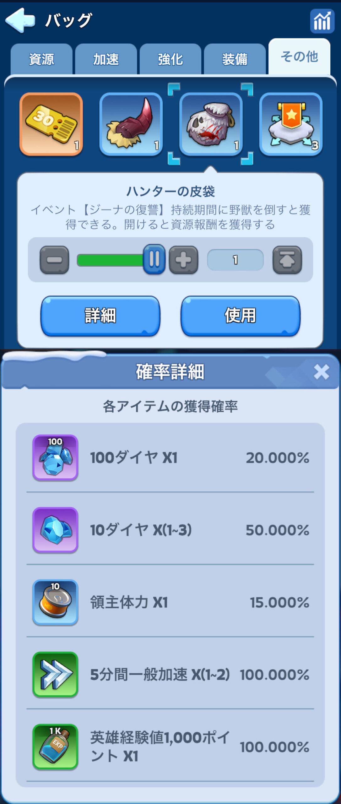 💰ハンターの皮袋(確率)