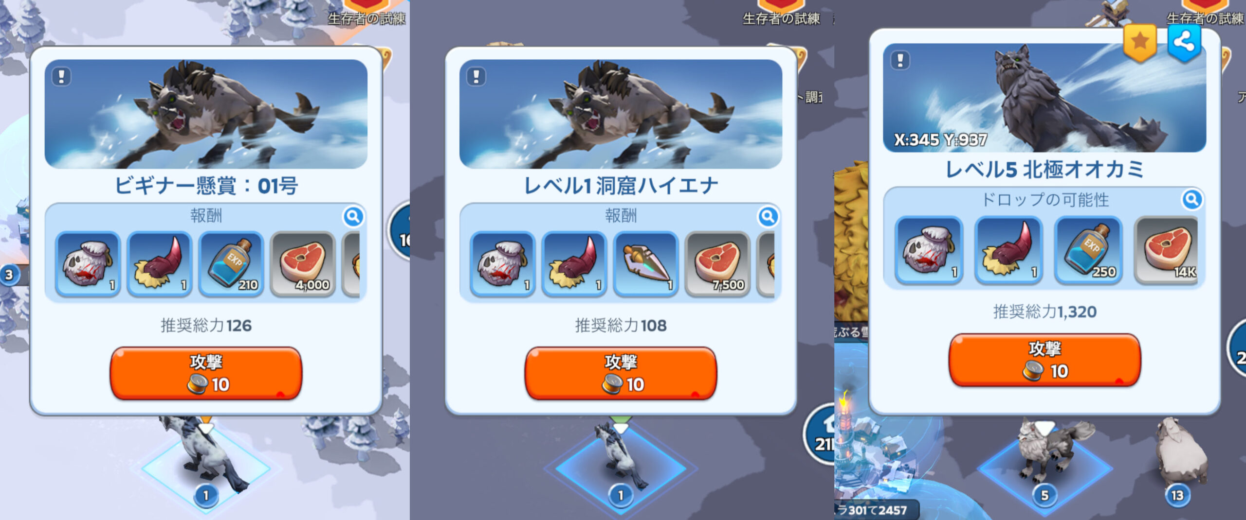 上のゲーム内説明①、任意の野獣とは以下の3種類です。