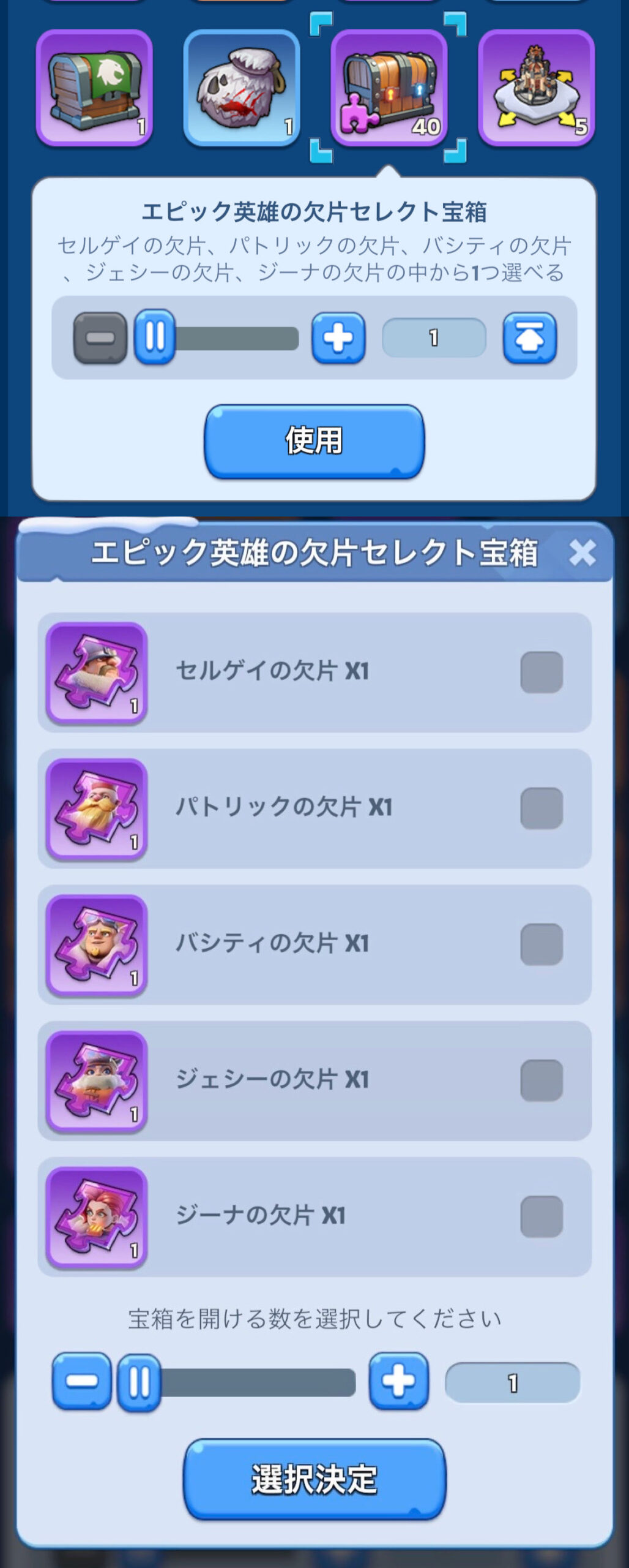 - 砦報酬(エピック英雄の欠片セレクト宝箱)