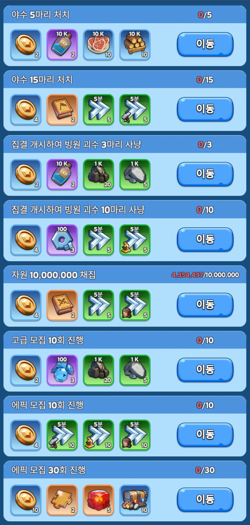 쉬운 미션을 진행하여 쉽게 보상을 획득할 수 있습니다.