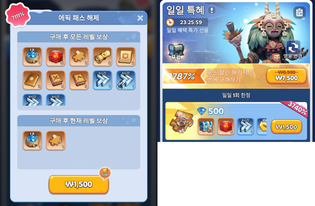 이벤트를 완료하고 싶다면 아래 두가지 패키지(초특가-잡속 선물/충전센터-일일 특혜) 중 하나를 구매하면 마지막 상자를 잠금 해제할 수 있습니다.