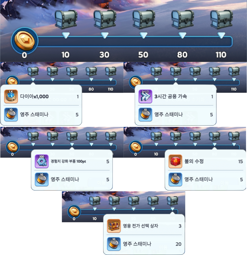 모든 이벤트에서 단 한번만 구매하면 모든 상자를 잠금 해제할 수 있는 희망포인트를 획득할 수 있습니다.