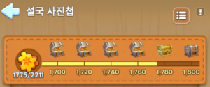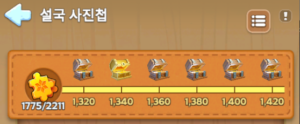 설국사진첩은 계정을 성장시키면서 여러 가지 이정표를 달성하면 보상을 얻을 수 있는 상시 진행형 이벤트입니다.