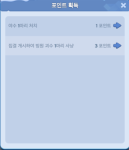 - 빙원 괴수 1마리 사냥 집결 개시 : 3포인트
