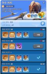 - 야수 사냥 : 총 80마리 사냥 (지나를 활용시 640개 스태미너 소모 / 지나 미활용시 800 스태미너 소모)
