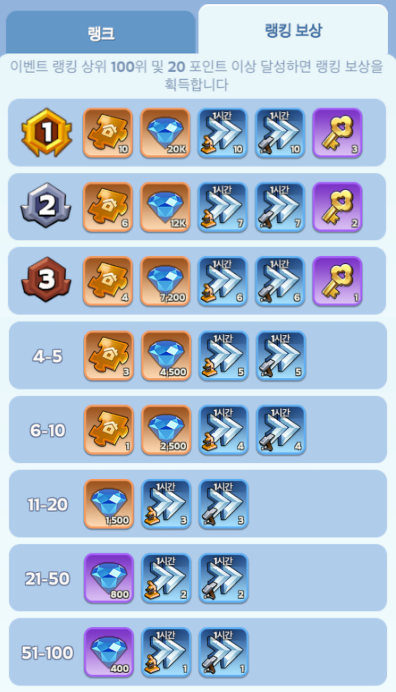 보상에는 2가지 유형(처치 보상과 랭킹 보상)이 있습니다.