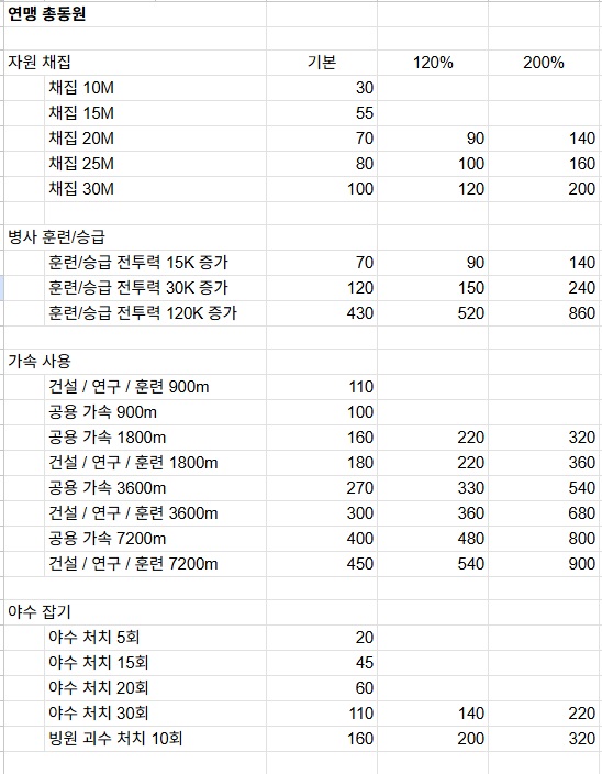 - 연맹 총동원은 한 달에 한 번, 월요일부터 토요일까지 진행됩니다.