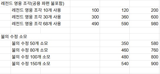 - 정복자 동상: +10% 채집 속도 (레전드)