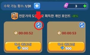 - 전용 임무: 가치가 더 높으며, 공통 임무보다 120% 또는 200% 더 많은 보너스 포인트를 제공합니다. 전용 임무는 새로고침 할 수 있지만, 새로고침 대기 시간은 완료할 때마다 증가합니다. 이 시간은 매일 초기화됩니다. 전용 임무는 주황색으로 표시됩니다.