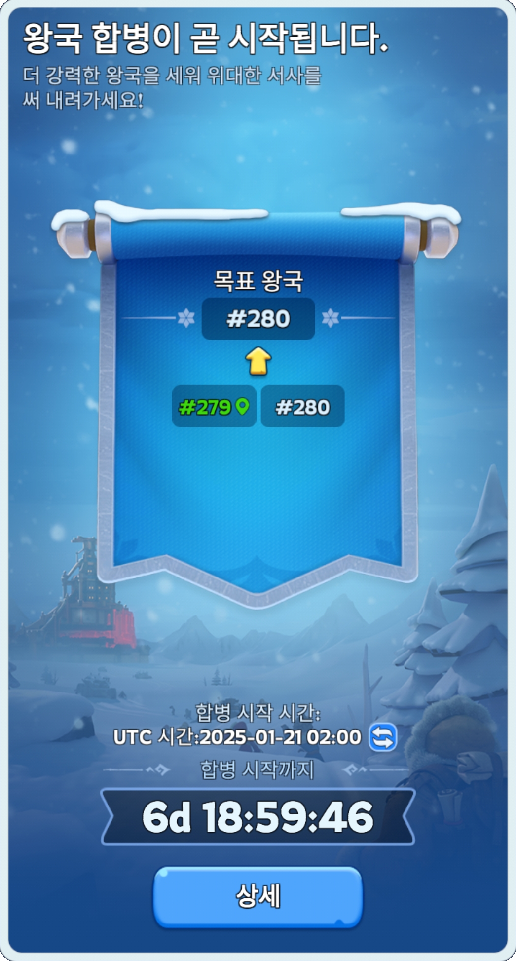 아래 첨부 이미지를 클릭하시면 왕국 합병 상세한 정보를 확인하실 수 있습니다.