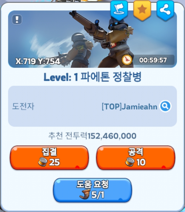 정찰을 진행하는데에는 총 15개의 스태미너가 필요하며, 정찰을 통해 나타난 파에톤 병사는 1시간 안에 처치를 하여야 합니다.