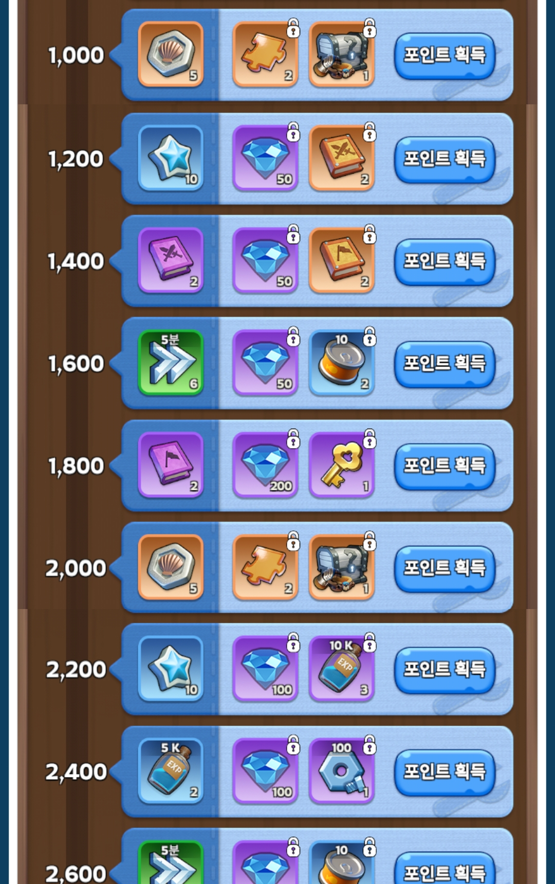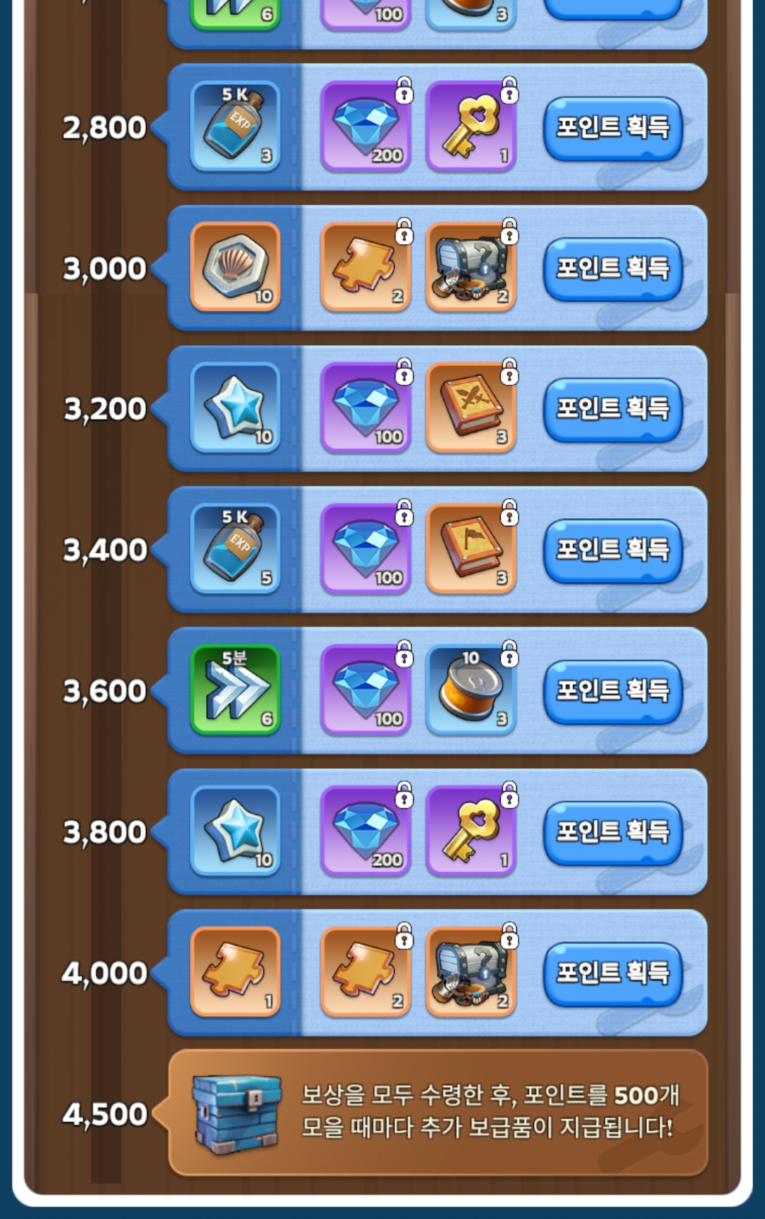일정 수의 샛별 포인트를 수집하면 진행도에 따른 보상을 획득할 수 있습니다.