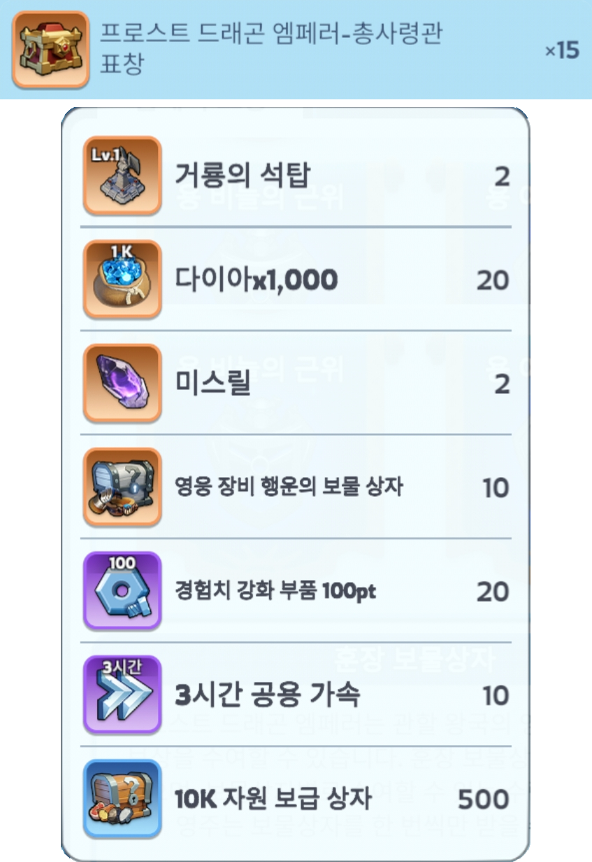 프로스트 드래곤 엠페러 보상