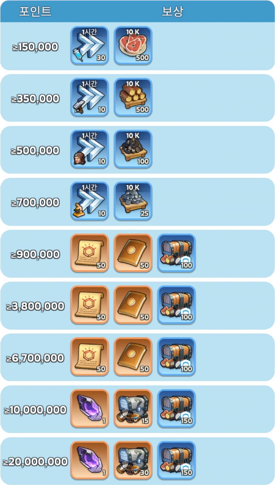 포인트 보상 – 연맹 포인트 랭킹