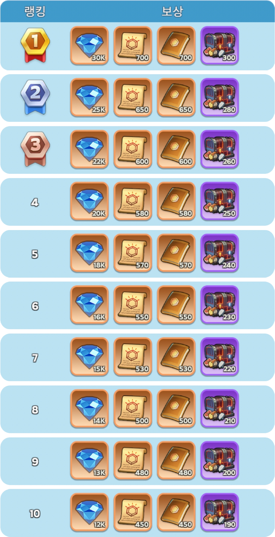 전장의 개인 포인트에 따라 랭킹이 정해지며, 해당 랭킹 보상이 발송됩니다. (프로스트 드래곤 캐슬 쟁탈이 끝나면 우편으로 발송됨)