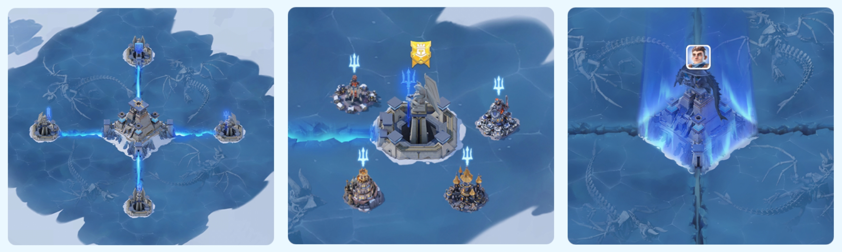 전장 한가운데 있는 오래된 캐슬에는 전설 속 서리용이 살고 있습니다. 캐슬 내부는 성의 근위대가 지키고 있으며, 외부에는 강력한 에너지가 담긴 석탑 4개가 지키고 서 있습니다. 전장 오픈 1시간 후 쟁탈이 시작되며, 캐슬을 가장 오랫동안 점령한 영주가 최고의 프로스트 드래곤 엠페러가 됩니다.