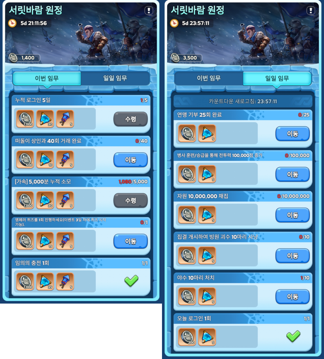 이벤트 기간에 영주님은 임무를 완료해 보상을 획득할 수 있습니다.