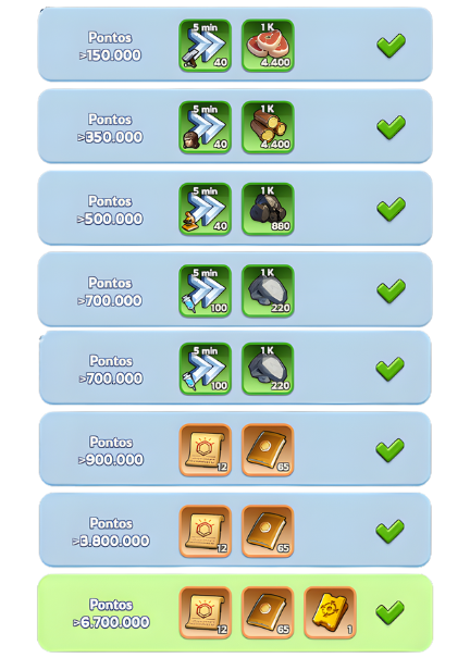 O número de pontos necessários e o número de recompensas dependem da idade do seu servidor e do nível da sua caldeira (F30- ou F30+).
