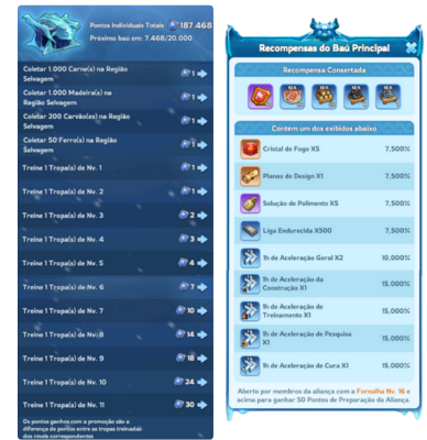 Lv4: 50.000 Pontos de Preparação da Aliança20% de redução no custo de cura na enfermaria para membros da aliança no Campo de Batalha do Dragão de Gelo
