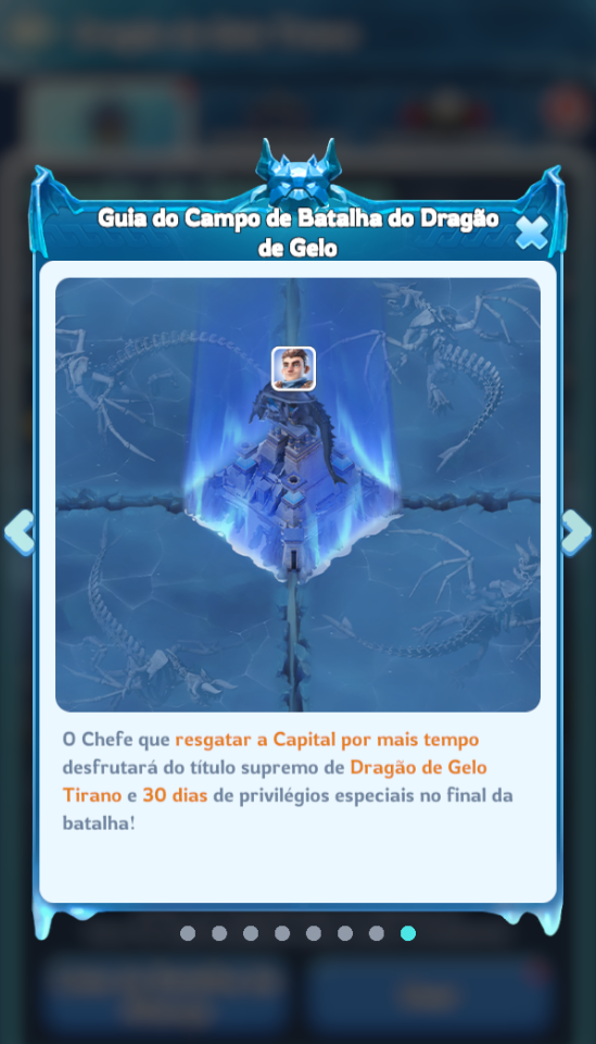 – O Chefe que reivindicar a Capital por mais tempo desfrutará do título supremo do Dragão de Gelo Tirano e 30 dias de privilégios especiais ao final da batalha!Benefícios do Dragão de Gelo Tirano Supremo para o Chefe dominar a Capital por mais tempo (30 dias).Ele também tem um pacote gratuito: