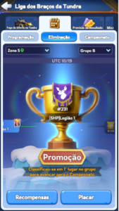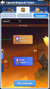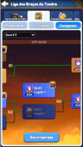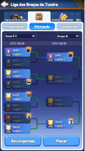 • Na rodada do campeonato, os quatro vencedores de zona são classificados pelo total de pontos líquidos ganhos (pontos líquidos significando os pontos da sua legião subtraídos dos pontos do seu oponente) em todas as partidas da fase eliminatória. Portanto, é importante garantir que sua legião acumule o máximo de pontos possível, pois mesmo que você não passe da fase eliminatória, seu total de pontos líquidos ajuda a determinar sua classificação final para as recompensas de classificação da legião.
