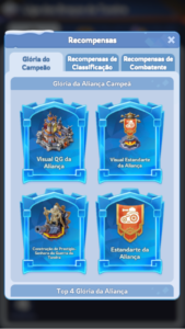 Além disso, as quatro melhores alianças em cada zona (ou seja, os vencedores de cada grupo dentro de uma zona) ganham várias recompensas de aliança, incluindo: um novo estandarte de aliança roxo, um logotipo de canhões cruzados e uma estátua da aliança LBT.