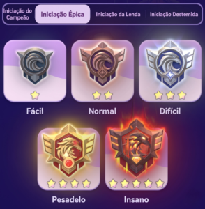 Quando o evento começa, você primeiro seleciona um nível de dificuldade (Campeões ou Lendas) e, em seguida, seleciona um nível de dificuldade dentro desse nível (Fácil, Normal, Difícil, Pesadelo ou Insano). Dificuldades acima de Fácil devem ser obtidas completando o nível de dificuldade anterior em um evento anterior, portanto, você precisará completar este evento no mínimo 10 vezes para completar todos os níveis de dificuldade.