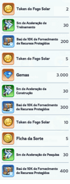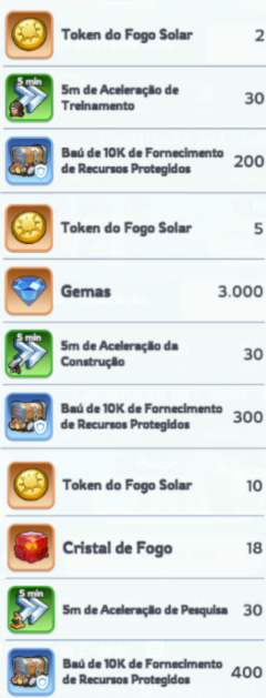 Todos os membros da aliança recebem essas recompensasFique entre os 150 melhores na classificação pessoal total para obter o fragmento de herói da geração estadual.Observação: você não terá direito às recompensas se deixar a aliança. Se quiser melhorar a Mega Aliança, comece a preparação antes mesmo de começar.