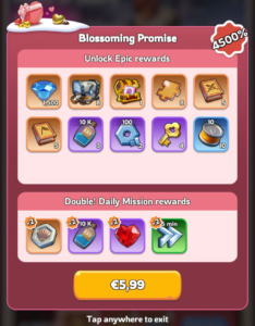Os jogadores também podem comprar o pacote Promessa Florescente para desbloquear o dobro de recompensas nas Missões Diárias e Recompensas Épicas.