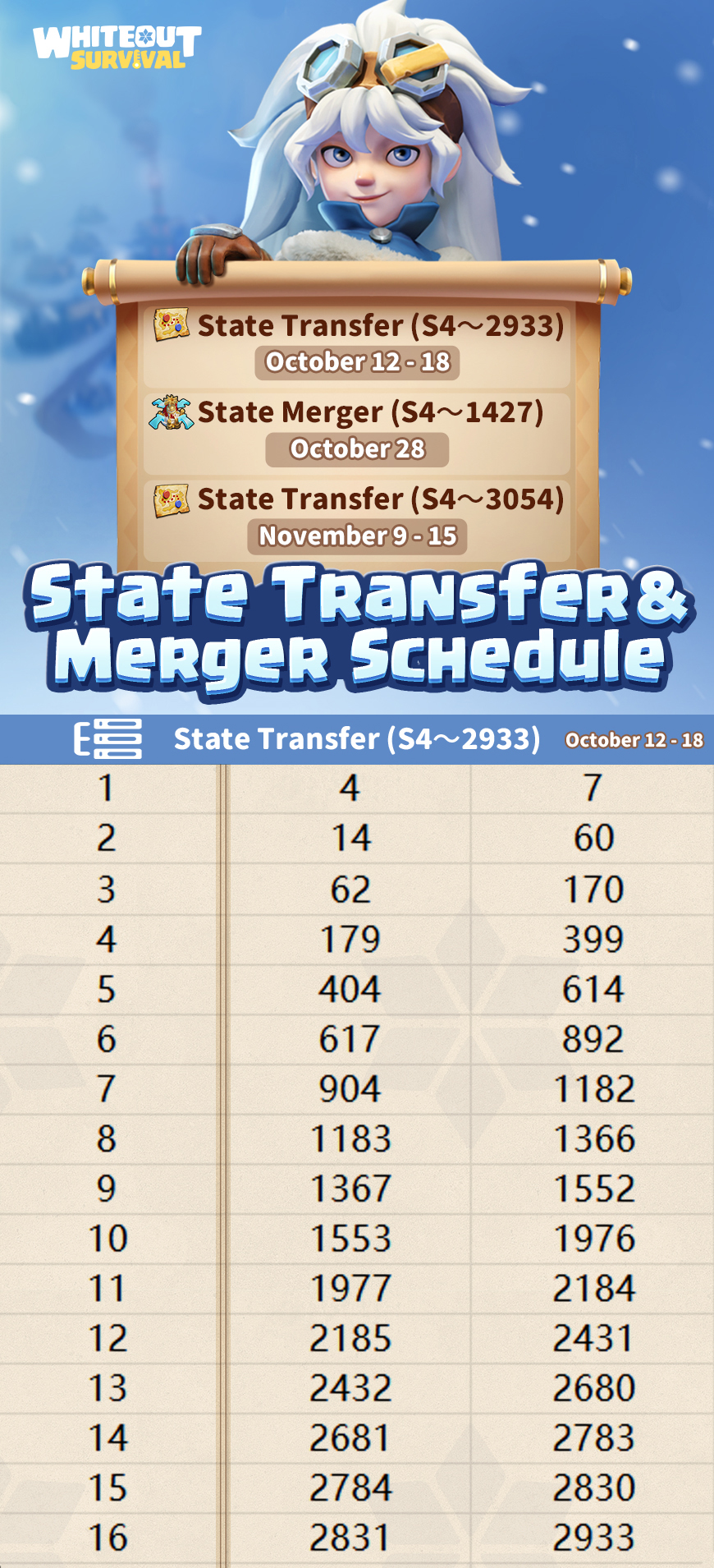 To bring more vitality and challenge to the state, while also promoting interaction and integration among states, the State Transfer and State Merger events will soon commence. Please find the schedule for State Transfer and State Merger events during October and November below: